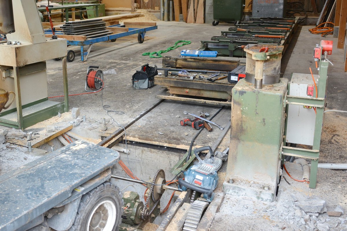 Am 14. Oktober 2025 starteten die Arbeiten für den Ersatz der Blockbandsäge. Nach dem Abbau der über 50-jährigen Maschine sind Anpassungen an der Infrastruktur notwendig, bevor die neue Säge installiert werden kann.